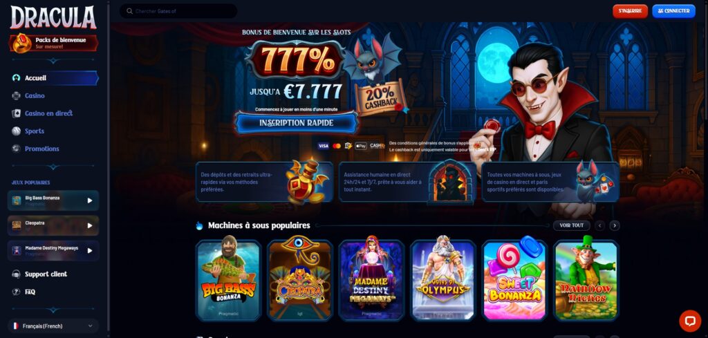 Ce qui distingue immédiatement Dracula casino, ce sont ses offres de bienvenue parmi les plus généreuses actuellement sur le marché. Le site va bien plus loin que les classiques free spins ou tours offerts, en proposant deux packs distincts dès l’arrivée : l’un réservé aux amateurs de slots, l’autre pensé pour les fans de paris sportifs.