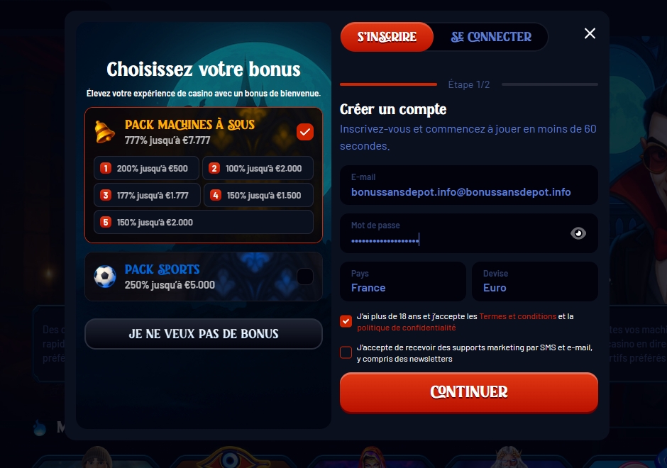 L’inscription sur Dracula casino ne demande que peu de temps et reste très accessible pour la majorité des utilisateurs. Tout démarre par le formulaire dédié, où il suffit de fournir une adresse e-mail, un mot de passe et parfois quelques informations supplémentaires selon le pays. Un point positif : la prise en main rapide permet aux nouveaux joueurs de découvrir l’offre sans attendre, accédant ainsi rapidement aux jeux gratuits ou aux offres d’essai.