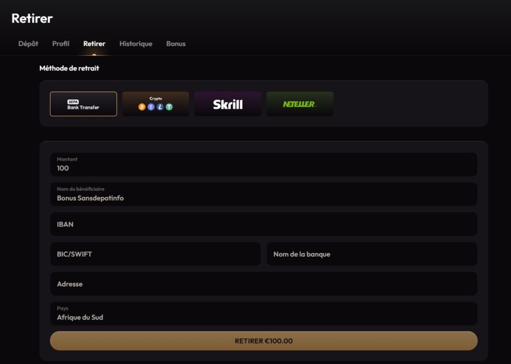 Les retraits rapides sont généralement traités en 24 à 48 heures. Chaque demande nécessite une vérification d’identité, ce qui assure la légitimité de l’utilisateur et la sécurité des transactions. Les opérations sont simples, sans frais cachés, et s’adaptent aux attentes actuelles des amateurs de casino en ligne.