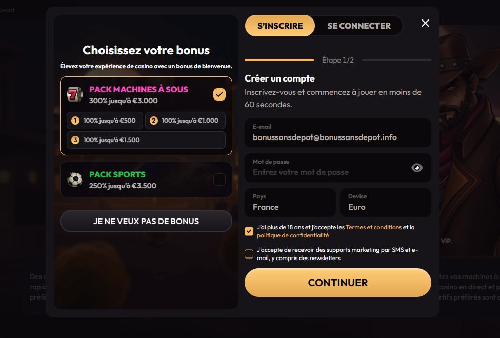 Ce package permet aux joueurs de démarrer avec un solide capital et donne accès à une vaste sélection de jeux dès l’ouverture de compte.