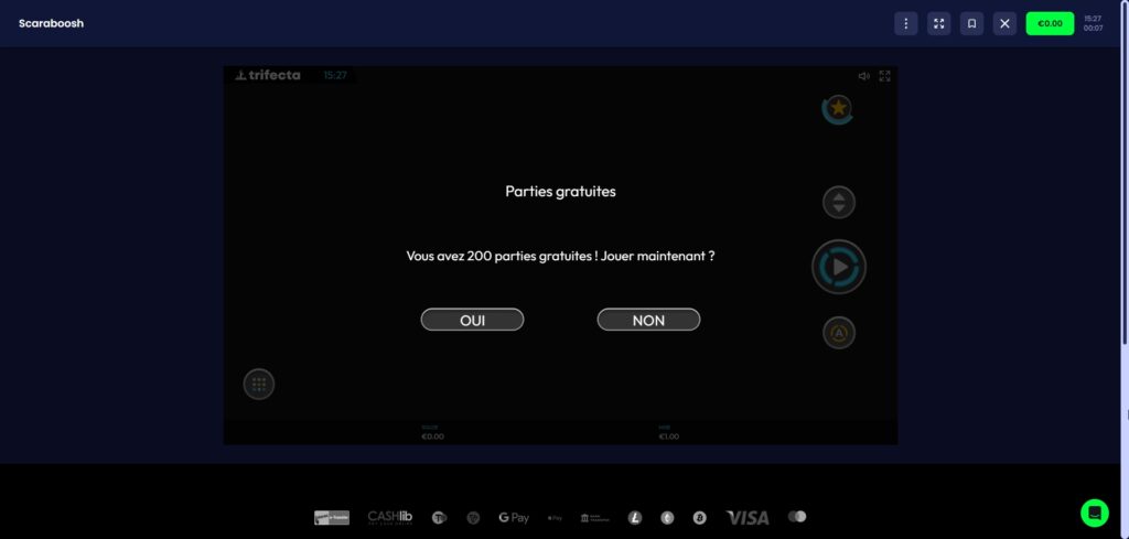 Once you've signed up, all you have to do is visit Trifecta Gaming's Scaraboosh slot machine.