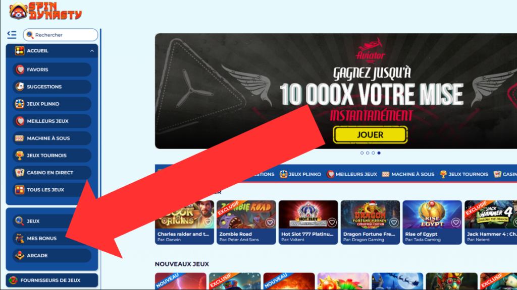 Once on the site, click on «MY BONUSES» in the menu on the left:
