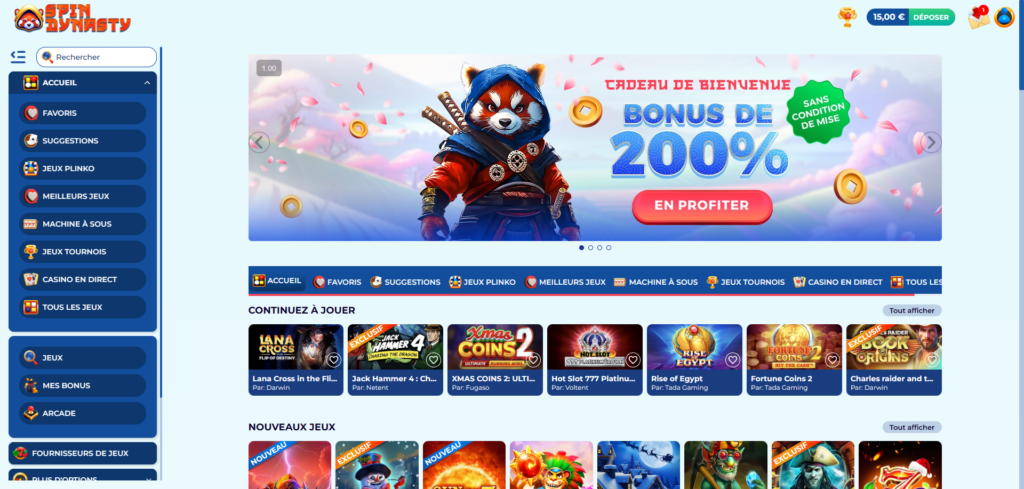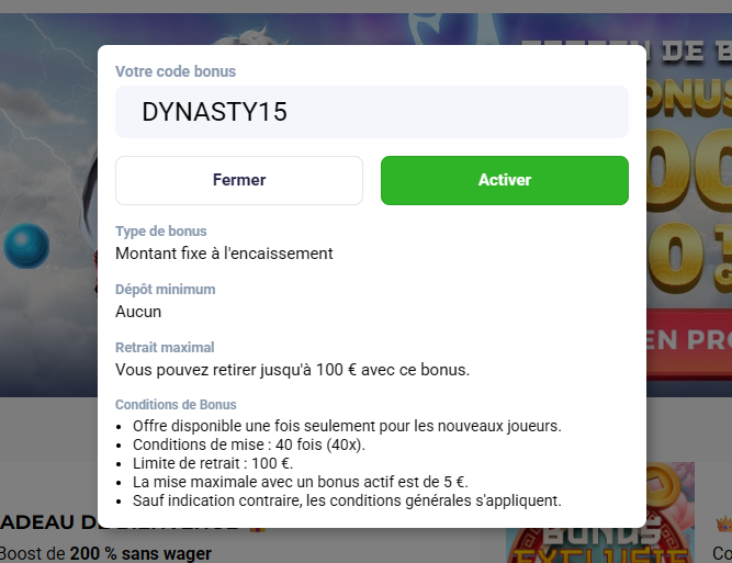 Spin Dynasty allows you to recover €15 with no deposit required Valid throughout the entire site. We explain how to claim the bonus step by step.